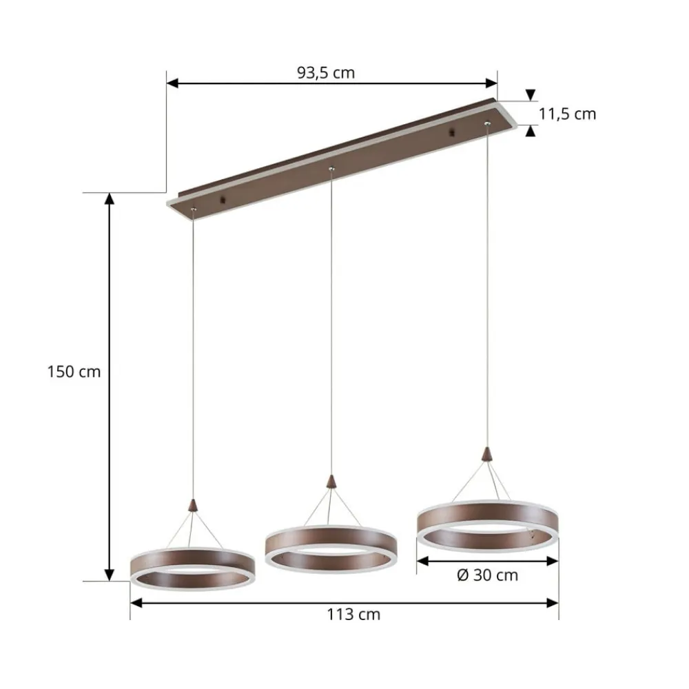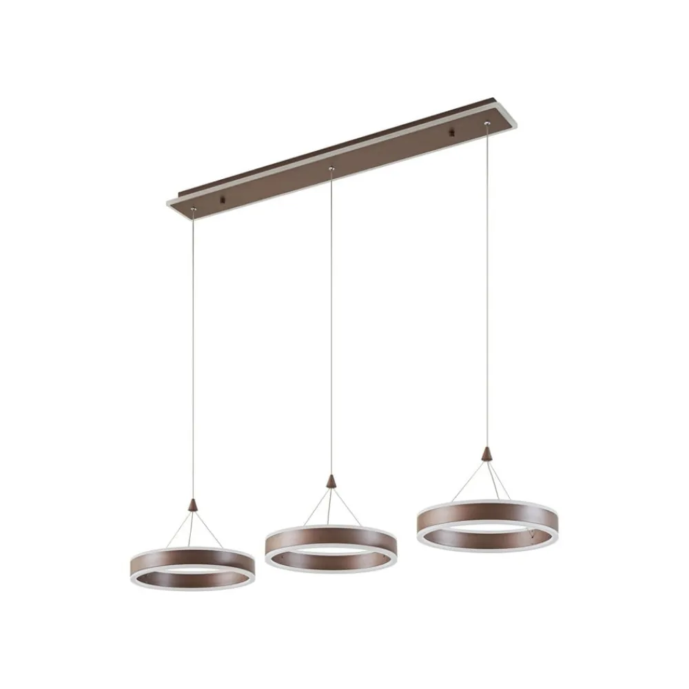 Dæmpbar LED-hængelampe Kolo i kaffebrun med tre ringformede skærme