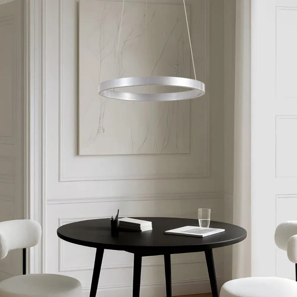 LED-hængelampe Yonam imponerer med sit moderne design og brugen af holdbare materialer som metal og silikone. Med sin elegante aluminiumsfarvede finish passer den perfekt ind i moderne stuer og spisestuer. Den integrerede LED-lyskilde sikrer en jævn belysning og tilbyder et imponerende farvetemperaturområde fra varmhvid til universalhvid. Farvetemperaturen kan indstilles individuelt i 3 trin fra varmhvid (2.700 K + 3.000 K) til universalhvid (4.000 K).