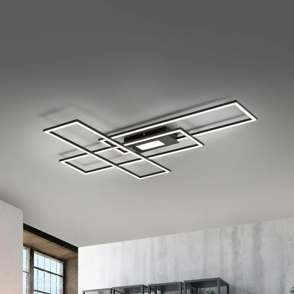 Inklusive fjernbetjening – sort LED-loftlampe Asmin med tre rektangler, dæmpbar