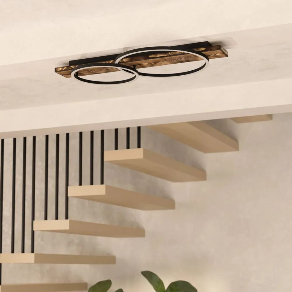 LED-loftlampe til en stemningsfuld boligatmosfære LED-loftlampen Boyal kombinerer funktionalitet med et strejf af natur takket være det brune trælook. Den er specielt designet til stuer, spisestuer og køkkener og skaber en atmosfære, der kan være både hyggelig og stimulerende. Designet med 2 lyskilder sikrer en jævn lysfordeling, der bader rummet i et behageligt lys. Brugen af LED garanterer en energieffektiv belysning, der ikke kun oplyser boligområdet, men også øger bevidstheden om bæredygtigt forbrug. Med den 2 lyskilder Boyal LED-loftlampe bliver lyset et designelement, der subtilt påvirker stemningen i rummet og samtidig opretholder en balance mellem æstetik og økonomi.