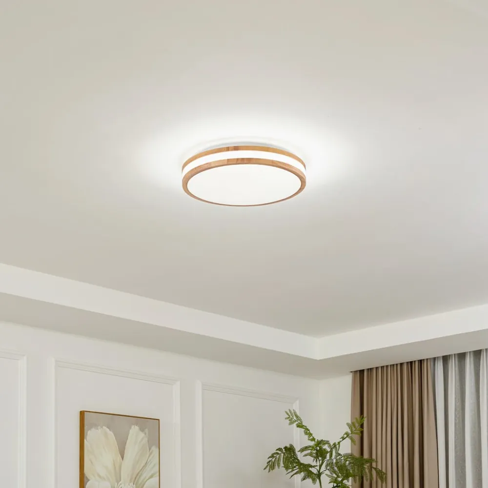 Lindby Loftlamper>Smart LED-loftslampe Mirren træ Ø49,5 cm CCT Tuya