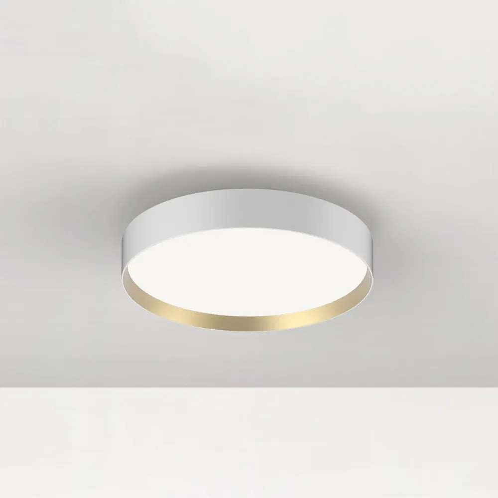 Lucia loftlampe med rund ramme og prismatisk skærm Det tidløse design af Lucia loftlampen gør det muligt at kombinere den med mange indretningskoncepter – uanset om det er klassisk eller moderne, i private eller offentlige/kommercielle omgivelser. En smal aluminiumsramme i form af en kort cylinder omgiver den flade diffusor. Sidstnævnte sikrer med sin mikroprismatiske struktur en homogen spredning af det varmhvide direkte lys; blænding og skygger minimeres – god farvegengivelse: CRI > 90 – eksternt dæmpbar (bagkant)