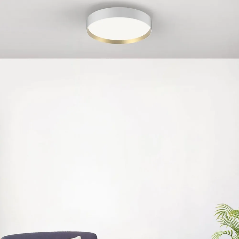 Lucia loftlampe med rund ramme og prismatisk skærm Det tidløse design af Lucia loftlampen gør det muligt at kombinere den med mange indretningskoncepter – uanset om det er klassisk eller moderne, i private eller offentlige/kommercielle omgivelser. En smal aluminiumsramme i form af en kort cylinder omgiver den flade diffusor. Sidstnævnte sikrer med sin mikroprismatiske struktur en homogen spredning af det varmhvide direkte lys; blænding og skygger minimeres – god farvegengivelse: CRI > 90 – eksternt dæmpbar (bagkant)