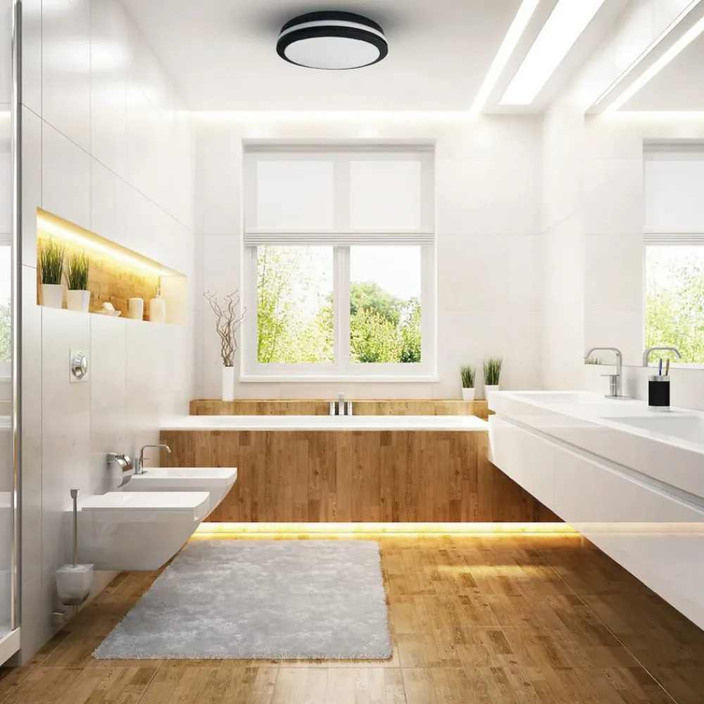 LED-loftlampe Marlon i sort-hvidt design med kapslingsgrad IP54