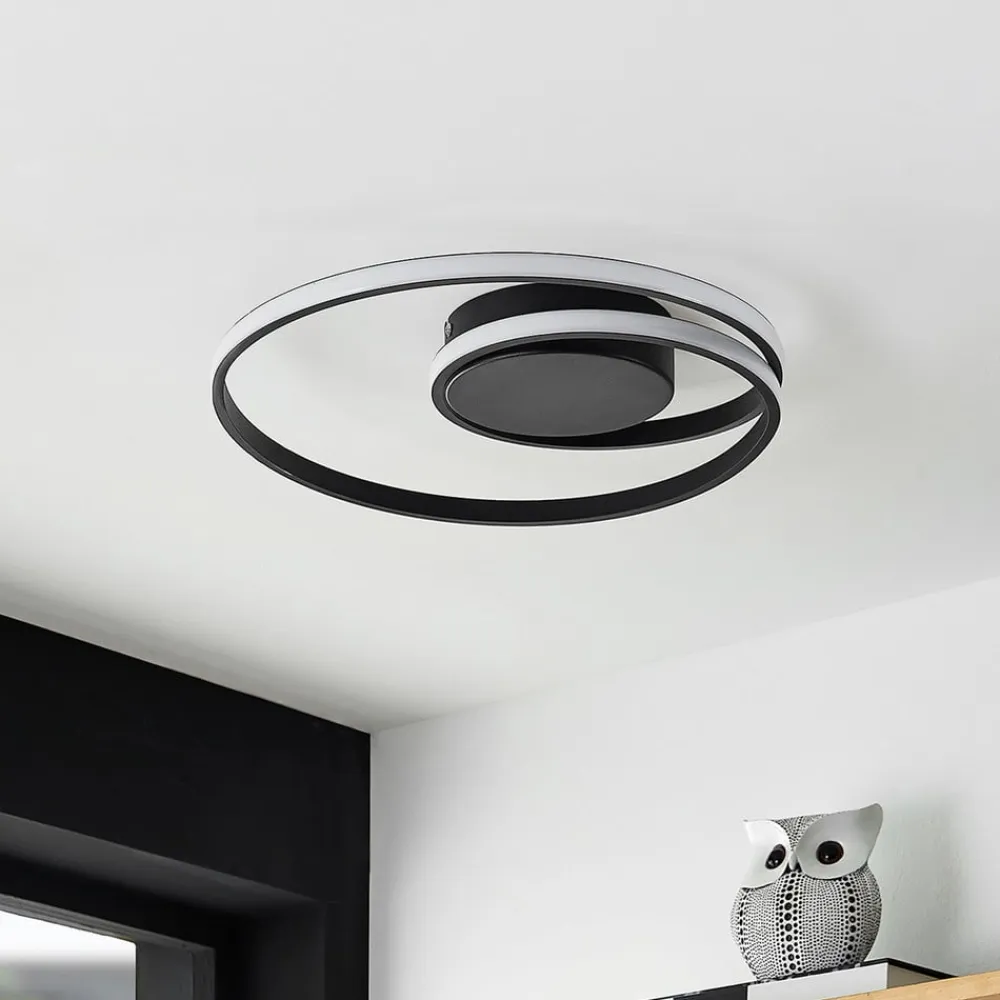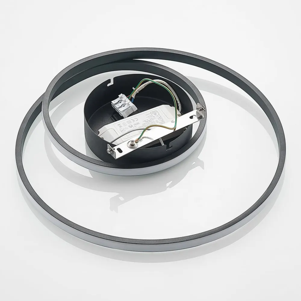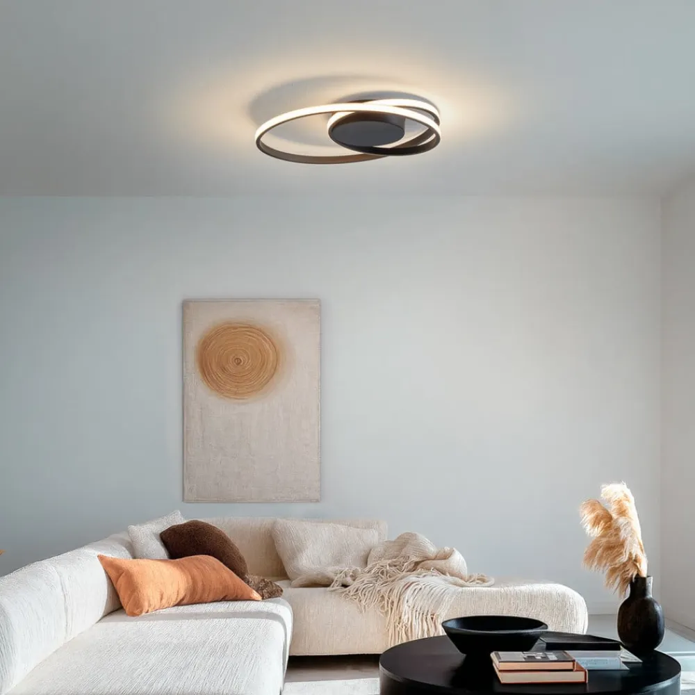 Den runde LED-loftlampe Youna er noget helt særligt. Lampekroppen er fremstillet af jern og aluminium og har en svunget form. Langs denne er LED’en fastgjort, som skaber et rundt lysskær og danner en løkke indeni. Lyset, der falder på denne måde, skaber et spændende lysspil på loftet og sørger for en behagelig atmosfære. Den usædvanlige form på LED-loftlampen Youna giver rumindretningen det lille ekstra og tiltrækker nysgerrige blikke. Den er således ikke kun en spændende lyskilde, men også et attraktivt dekorationselement.