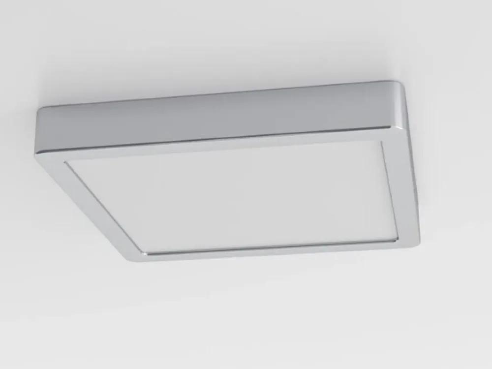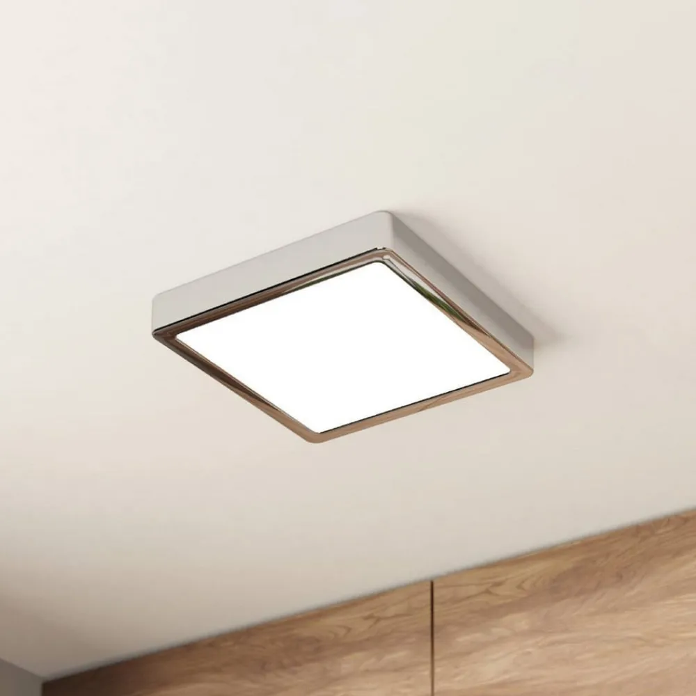 LED-loftslampe Fueva 5 IP44 3000K krom 21x21cm