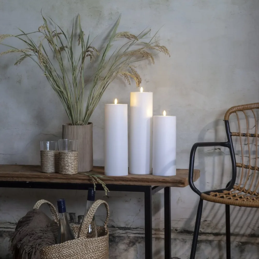 LED lys Flamme Rak 37,5 cm hvid plast batteridrevet^STAR TRADING Online