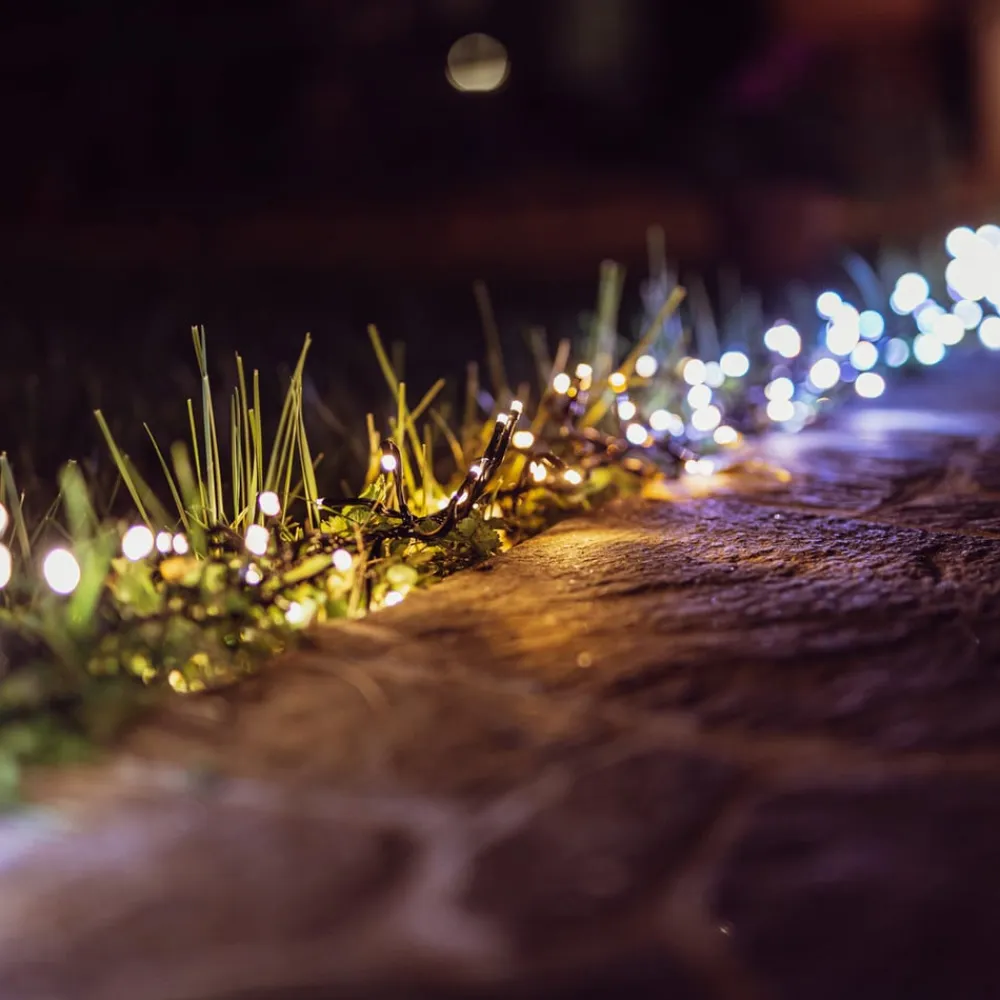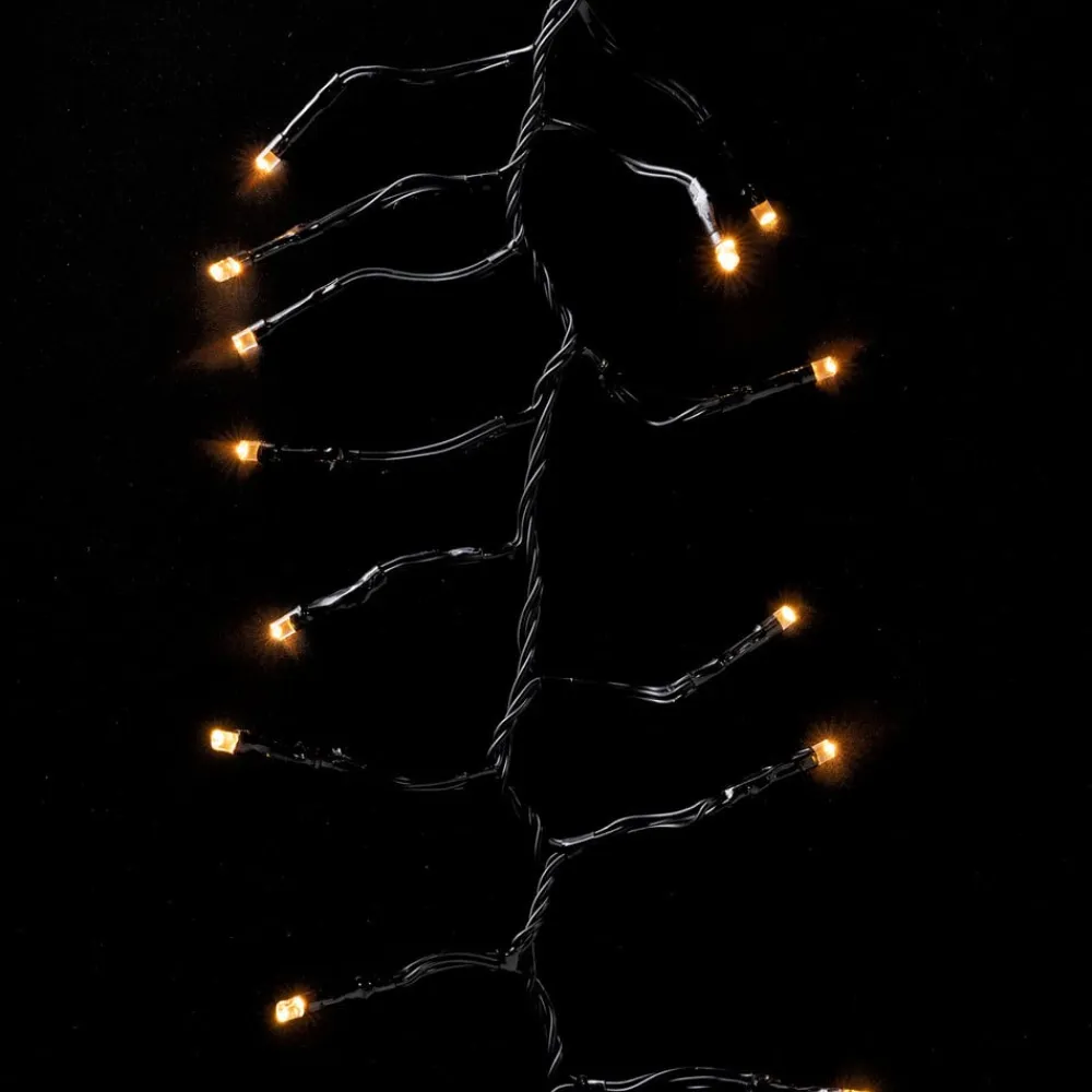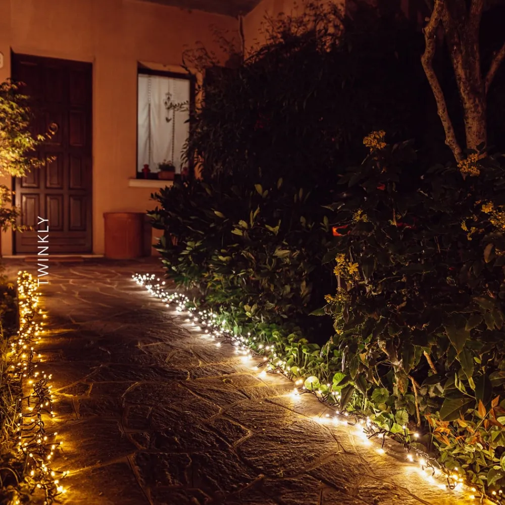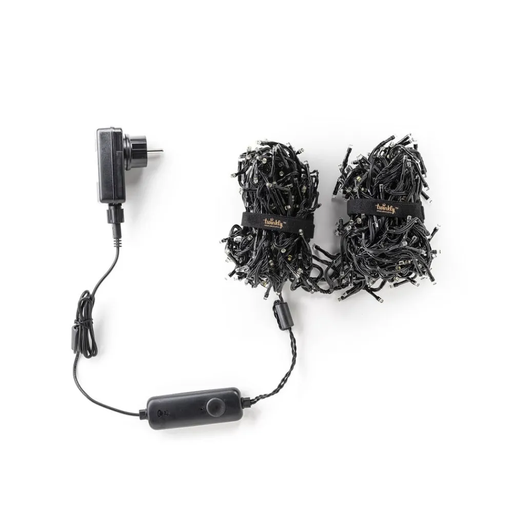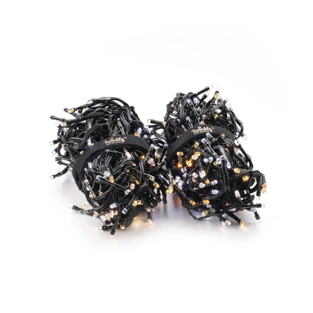 Smart konfigurerbar lysdekoration til indendørs og udendørs brug – Twinkly CCT lyskæde – Rav, varmhvid, dagslys lysfarver Uanset om det er spændende blinkende, i dynamiske bølger og svulmende og dæmpende – ethvert mønster er muligt med Twinkly LED-lyskæden, hvis utallige lysdioder er fastgjort til kabler, der forgrener sig ud til siden. En dedikeret mini Wi-Fi og Bluetooth giver mulighed for betjening via app eller smart integration til styring med stemmekommando. Den medfølgende controller kan bruges til at tænde og slukke for lysene og til at vælge forudinstallerede mønstre og sekvenser. Disse kan redigeres efter behov ved hjælp af Twinkly-appen; det er også muligt frit at konfigurere farvetemperatur, lysstyrke, mønster, rotation og ændringshastighed. Til dette formål optages de enkelte LED’er med smartphonekameraet og tildeles af appen i henhold til deres position. En webapplikation på basis af internettet er tilgængelig til overskuelig styring og gruppering af mere omfattende Twinkly-dekorationsbelysning, der består af flere elementer.