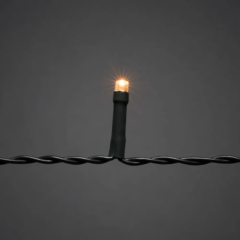 I løbet af nul komma niks får man udsmykket juletræet med masser af små lys – det kan man med denne lyskappe, som blot trækkes ned over træet oppefra. Så pryder otte strenge med hver 30 rav-farvede, lysende LED-pærer træet med deres varme lysglans. Halvdelen af de i alt 240 lysdioder funkler, og det forøger naturligvis dekorationseffekten yderligere. Kablet er sort. En transformator medfølger.