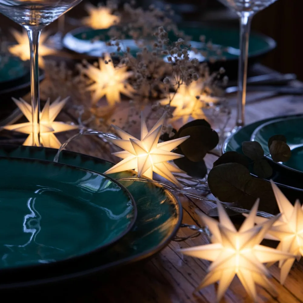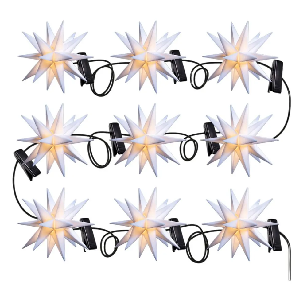 Med den 9 lyskilder LED-lyskæde med 9 baby-stjerner kan udendørsarealer – trapper, altanrækværk eller vinduer – pyntes festligt. Inkl. udendørs transformer.