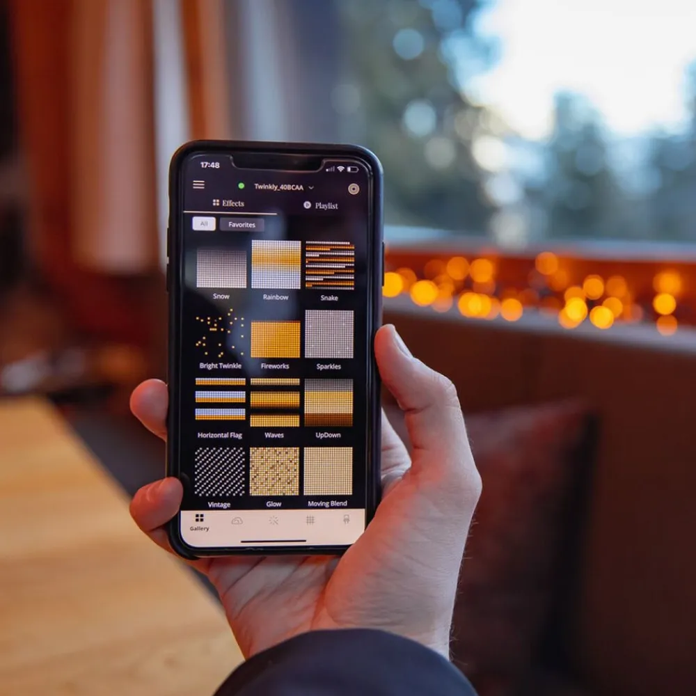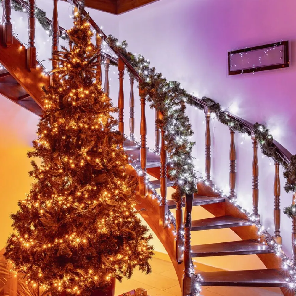Twinkly LED-lyskæder til lysdekoration med justerbare hvide toner – kan styres via WiFi og Bluetooth Med et bredt spektrum af hvidt lys giver denne lyskæde mulighed for perfekt koordinering med den respektive atmosfære – varmt lys til sommerfesten, køligt dagslys-hvidt til den glødende dekoration i den sneklædte vinter. LED’erne kan styres individuelt, så der er ingen grænser for kreativiteten – uanset om det er i henhold til lysstyrke, mønster, rotation, ændringshastighed, utallige gradueringer eller endda i henhold til musikkens rytme. Forudkonfigurerede mønstre kan også kaldes frem og aktiveres via en controller på kablet. Et Bluetooth-modul og et lille WiFi er integreret i Twinkly for smart betjening. Dette muliggør direkte styring med en smartphone og endda integration i smart home-systemer. Funktioner/kompatibilitet – Bluetooth-aktiveret, med integreret WiFi-netværk – Kan betjenes direkte med en smartphone via den gratis Twinkly-app til iOS og Android – Kompatibel med Google Assistant og Amazon Alexa – Problemfri 3D-kortlægning og individuel styring af hver LED – Kan synkroniseres med musik takket være en mikrofon (ekstra USB-dongle påkrævet) – Udendørs rækkevidde: ca. 15 m