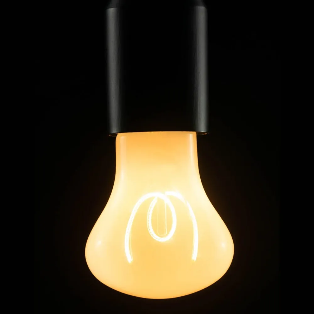 I Segula’s patenterede soft filament teknologi er LED’erne blevet installeret i denne lampe designet i en usædvanlig form af opalhvidt glas, hvilket gør den til et dekorativt højdepunkt i åbne armaturer. Denne teknologi, hvor kølepladerne sidder direkte på glødetrådene, giver en konstant varmeafledning og gør brugen af kølegasser overflødig; desuden opnås et betydeligt højere lumenudbytte.