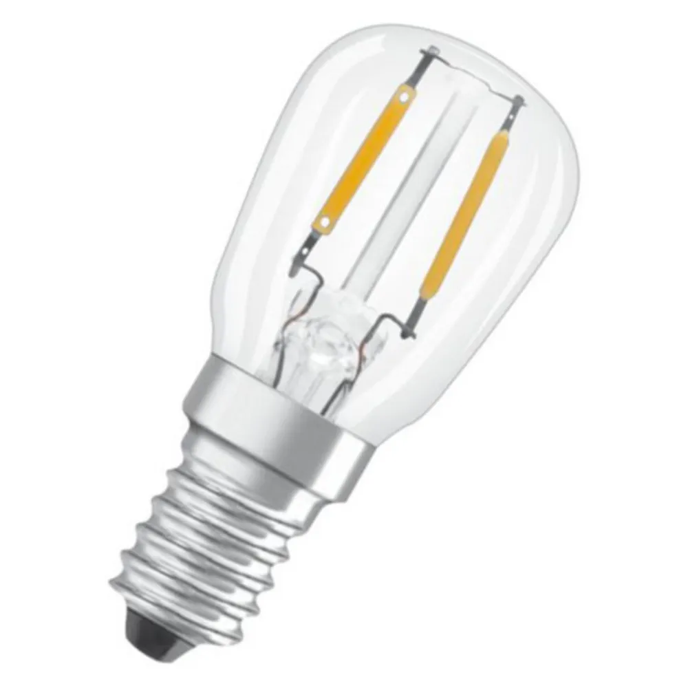 OSRAM E14 1,6 W LED-pære T26 Filament med klart glas til køleskab eller små lampeskærme, lysfarve 2.400 K ekstra varmhvid