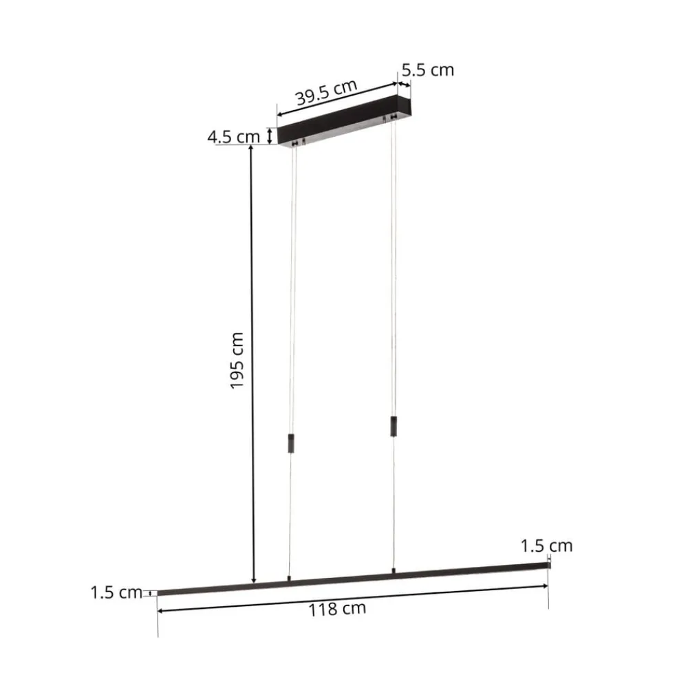 Quitani LED-pendel Tolu, sort, længde 118 cm