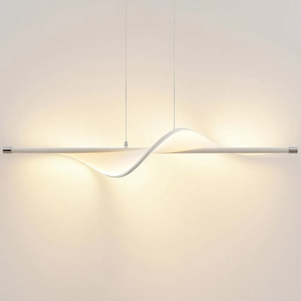 LED-pendellampe Edano, 122 cm, hvid, tekstil, dæmpbar^Lucande Best
