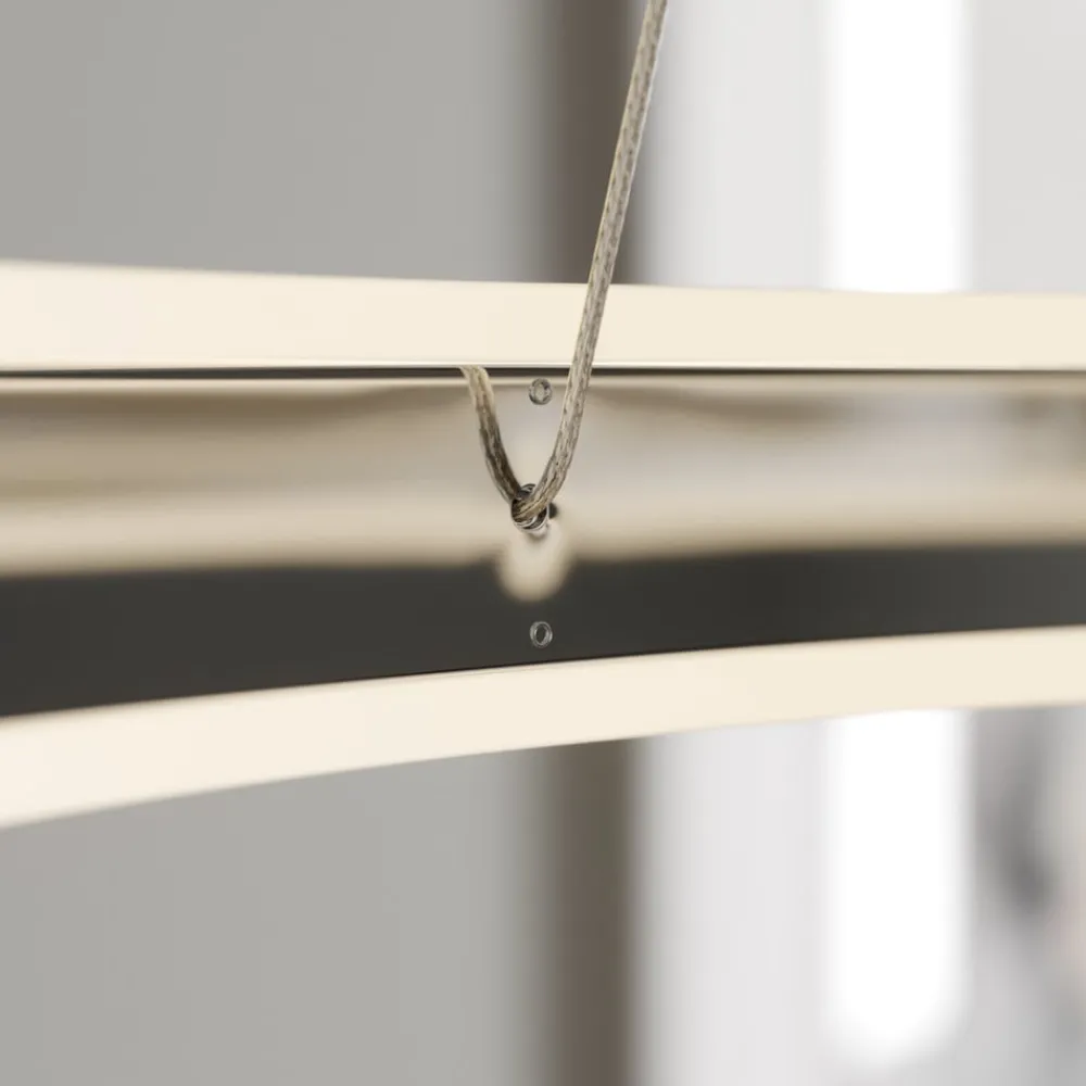 Lyani – tretrins dæmpbar pendel med integreret LED-teknologi ved hjælp af vægkontakten Denne LED-pendellampe består af en stor, lysende ring, hvilket gør den ideel til at installere over et bord i køkkenet eller spisestuen. Ringen har en skinnende kromfinish og hænger ned fra loftet i fine stålkabler. Da der ofte er brug for forskellige niveauer af lysstyrke over et spisebord afhængigt af situationen, kan pendellampen dæmmes i tre trin ved hjælp af en vægkontakt for at skabe både stærkt og mere hyggeligt lys med mindre lysstyrke.