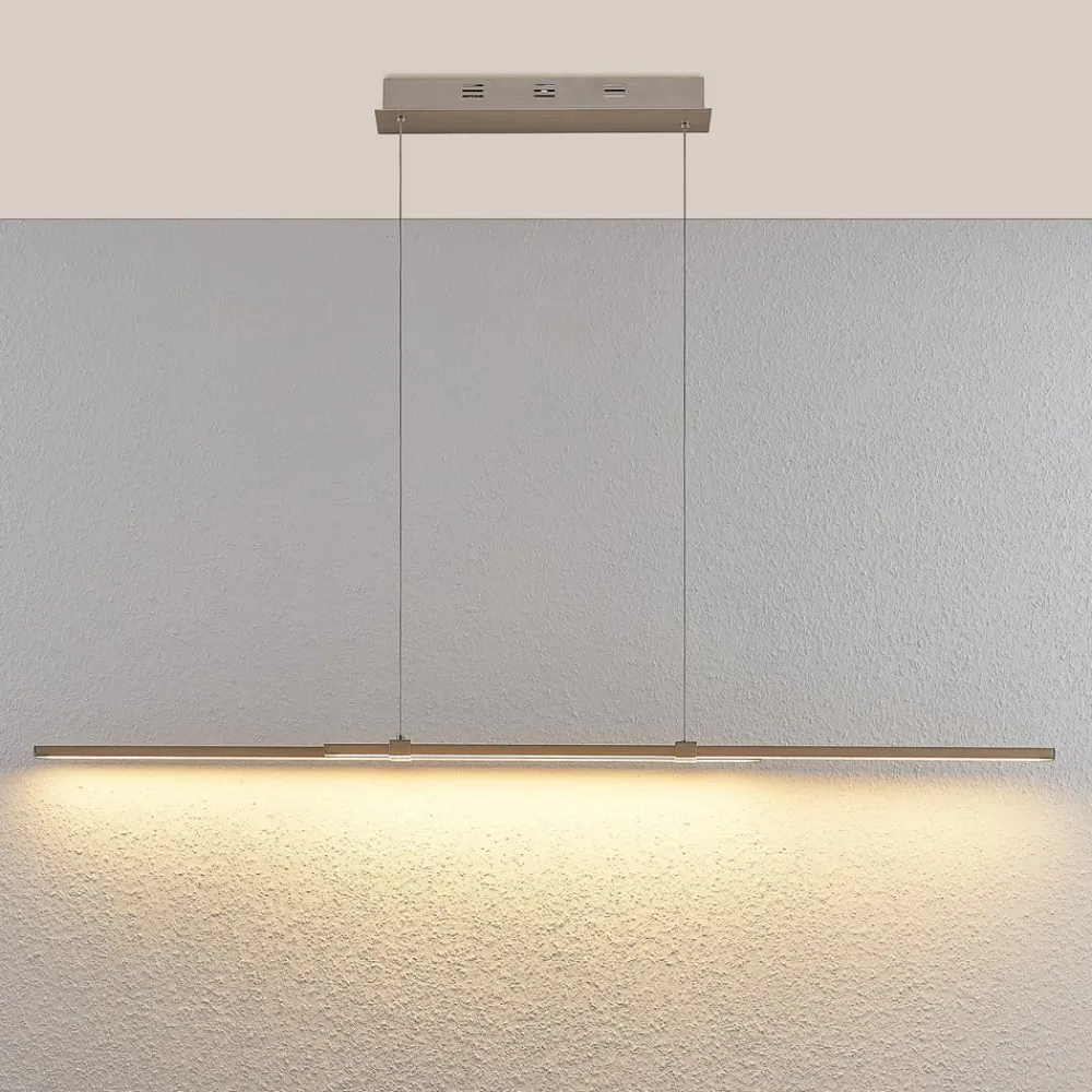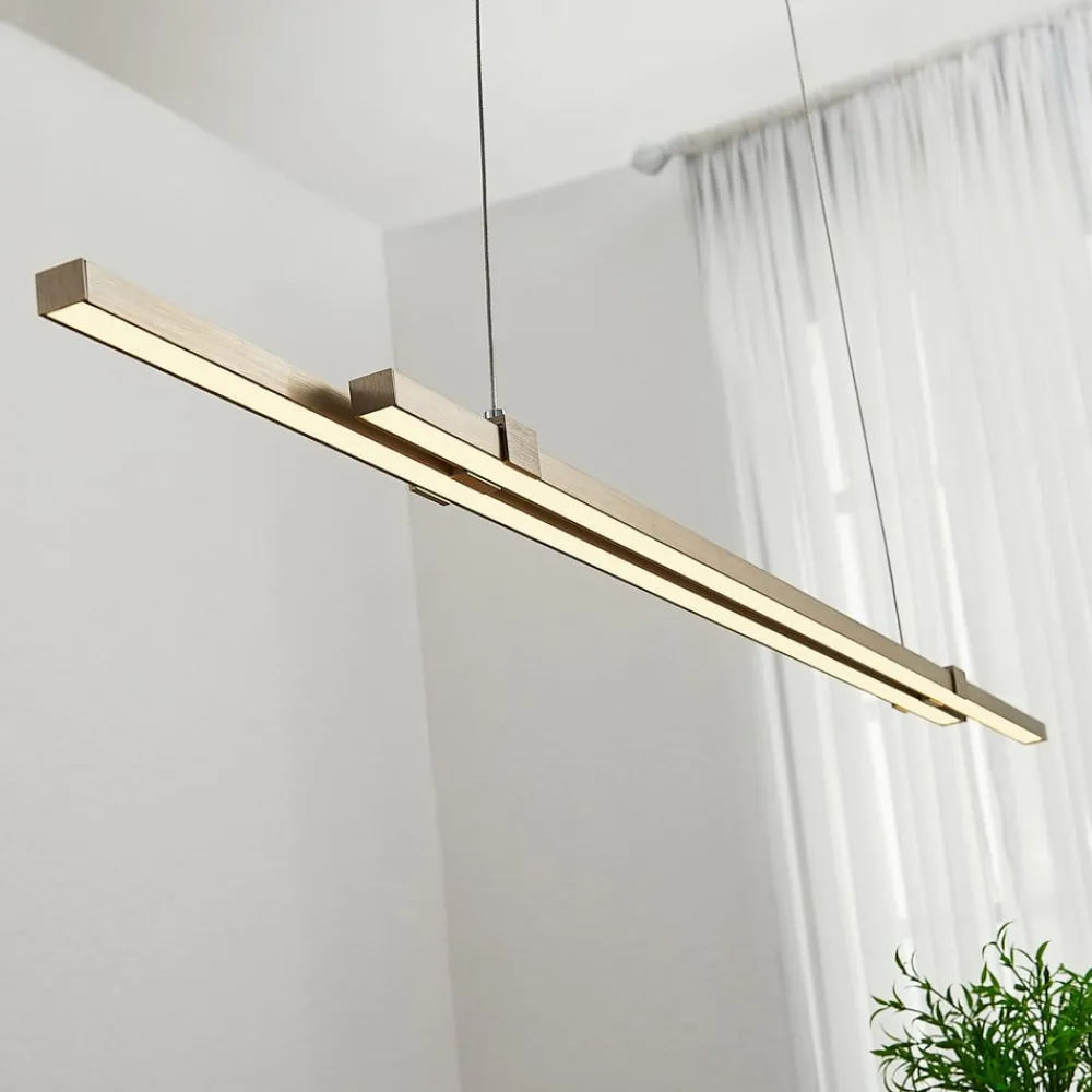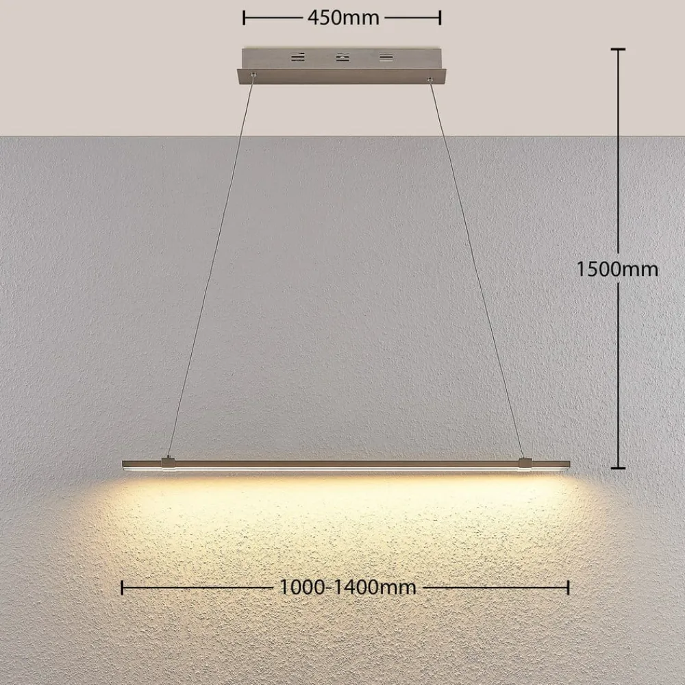 Tymon er en LED-pendellampe, der indfanger et yndefuldt udtryk. Her er der ikke brugt nogen klassisk skærm, men en smal lysstang, der helt præcist er sammensat af to stænger. Det helt særlige: På den måde kan pendellampen trækkes og ændre længde (100 cm til 140 cm). Det kan særligt være en fordel, hvis man har indbudt gæster og ønsker at lyse spisebordets flade rummeligt op. Takket være LED-teknikken sikres der en meget stor lysstyrke. En eksternt monteret dæmper kan imidlertid også tilbyde muligheden for at regulere lysstyrken.