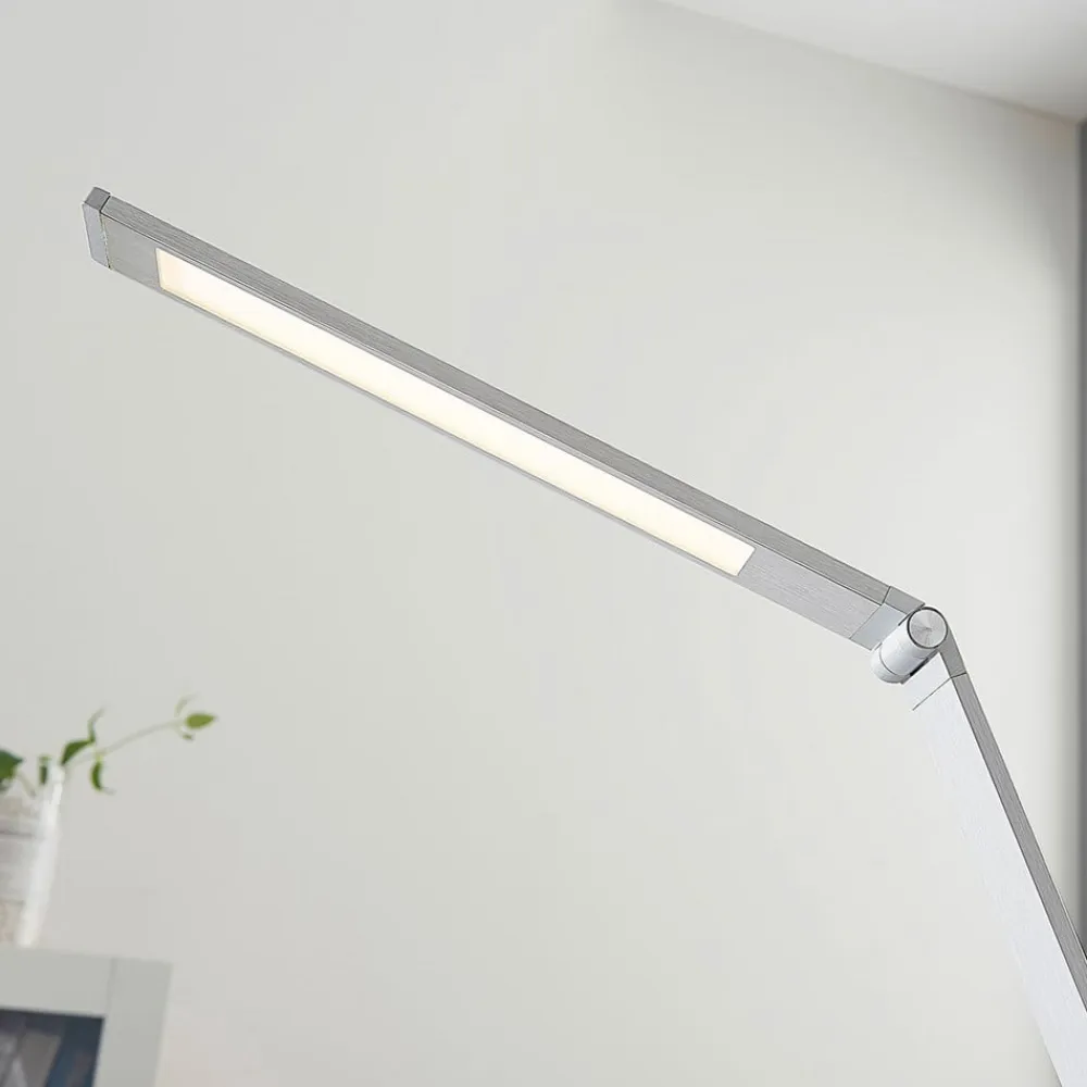Lucande LED-skrivebordslampe Nicano, grå, metal, dæmpbar.