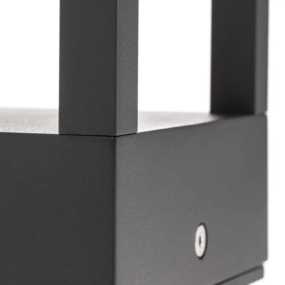 Mørkegrå Carlota LED-sokkellampe med hyggeligt, nedadrettet lys Carlota fremhæver haver og indkørsler, især hvis de er designet i en moderne stil, da armaturets krop er designet til at være enkel og gennemskinnelig. I stedet for en gennemgående skærm eller ramme præsenterer denne LED-sokkellampe sig blot som en tredimensionel ramme med god synlighed og et udtryk af særlig lethed. LED’en er placeret i den øverste del, og lyset sendes nedad, uden at man kan se det direkte i normal ganghøjde eller blive blændet af det. Tværtimod opfattes belysningen som absolut behagelig udendørs og giver god orientering hele natten. LED-teknologien scorer ikke kun med en behagelig varmhvid lysfarve, men også med lavt strømforbrug og imponerende lysstyrke.