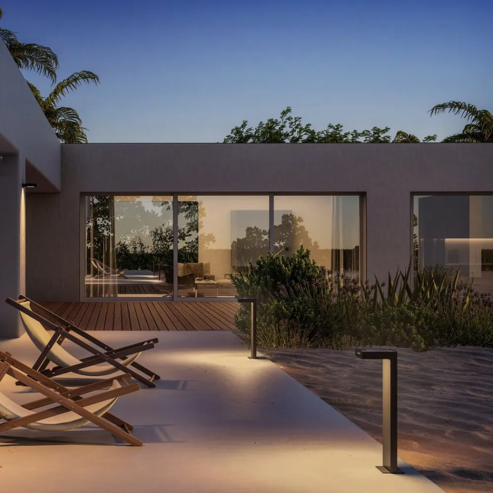 ALA GROUND MAXI nedadlysende LED-sokkellampe ALA GROUND MAXI LED-sokkellampen giver et varmhvidt lys til gangstier og indkørsler – helt autonomt takket være solcellemodul, genopladeligt batteri og skumringssensor. Det minimalistiske design med flade, rektangulære elementer i antracitfarvet aluminium passer perfekt ind i moderne omgivelser – Dagslyssensor til automatisk tænding og slukning ved 50 lux – UV-bestandig pulverlakering – Skruer i rustfrit stål – Opladningstid: 6 – 8 timer – Driftstid: 16 – 18 timer – Udskifteligt batteri – Indikator for opladningsniveau – Solpanel: 2,5 W monokrystallinsk, dæksel af hærdet glas