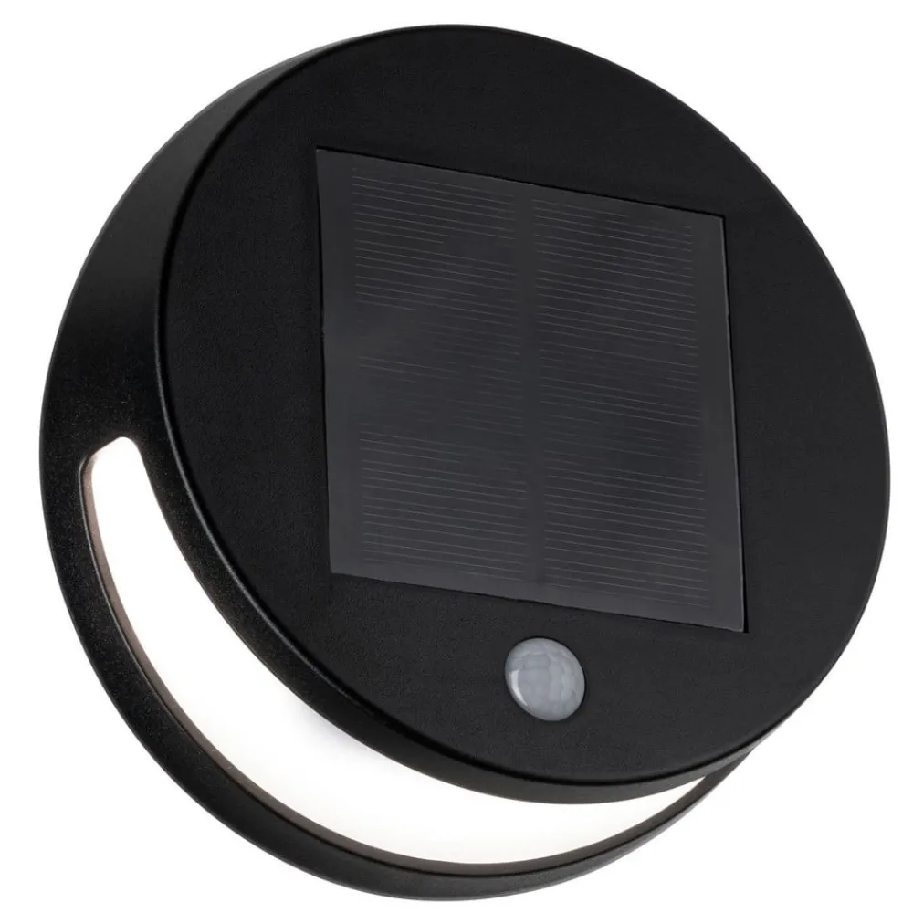 Rund LED udendørs væglampe Helena med solteknologi og bevægelsessensor