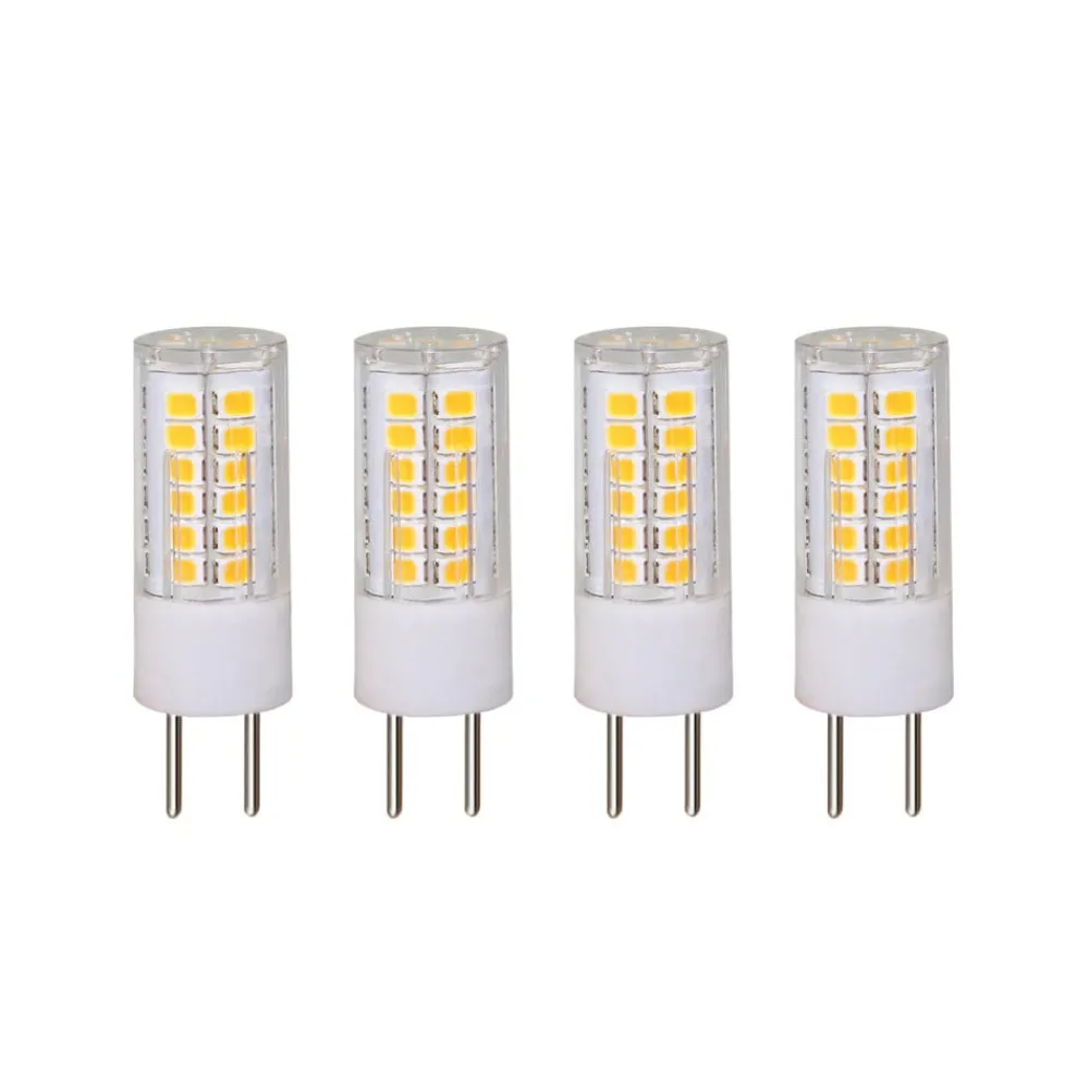 G4 LED-stiftsokkelpære 3,4 W med varmhvid lysfarve (2.700 K), dæmpbar – i et praktisk sæt med 4 Denne G4 LED-pære har et klart dæksel og en hvid keramisk base. Det varmhvide lys skaber en hyggelig atmosfære og kan bruges i forskellige armaturer. LED-teknologien giver en kraftig belysning, samtidig med at den er økonomisk med hensyn til strømforbrug, hvilket betyder, at den er meget effektiv – Lysfarve varmhvid 2.700 K – Ikke dæmpbar – Leveres i sæt med fire stk