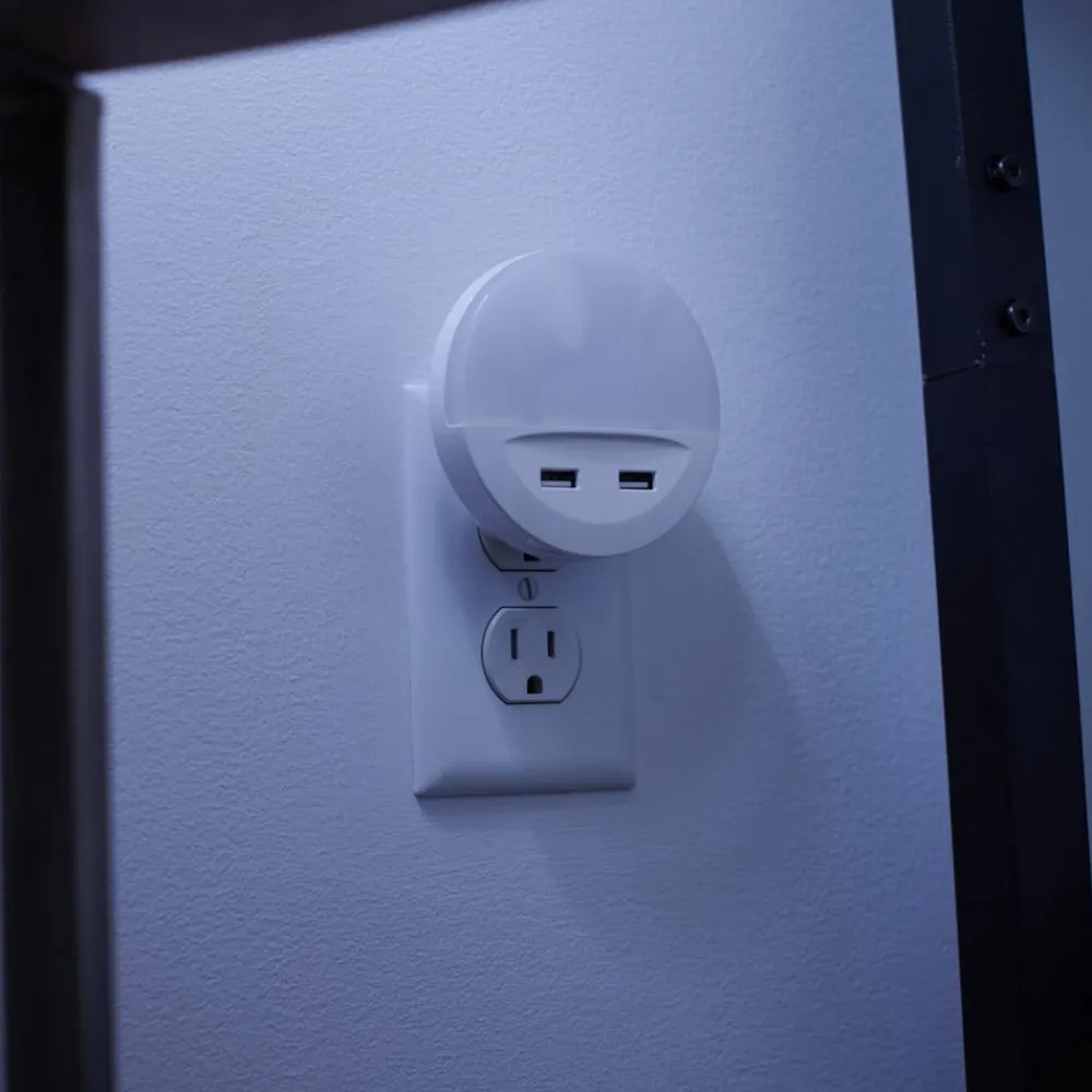 LED-natlampen LUNETTA USB med opladningsport Produktfordele: Tændes og slukkes automatisk ophæng af dagslys. Plug-and-play med EU-stik. Energieffektivt takket være LED-teknologi. Anvendelsesområder: Soveværelse. Børneværelse. Kun til indendørs belysning.