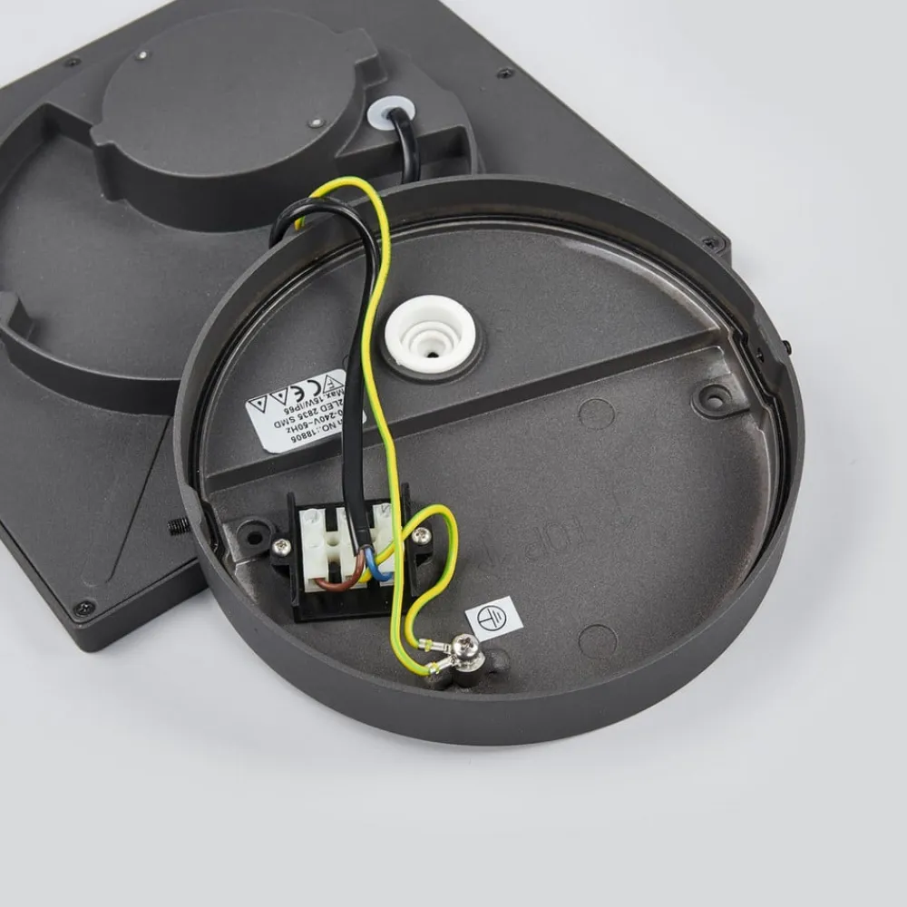 Mørkegrå Mabella udendørs loftlampe med LED’er Mabella LED udendørs loftlampe er godt beskyttet mod fugt og snavs takket være kapslingsgraden IP65. Den tydeligt synlige ramme er lavet af mørkegråt aluminium, mens diffusoren over de varmhvide LED-pærer er lavet af polykarbonat og sikrer en jævn fordeling af lyset takket være den hvide overflade. Selve LED’erne er kendetegnet ved god energieffektivitet, og Mabella kan bruges på mange forskellige måder som en udendørs loftlampe med et tidløst udseende.
