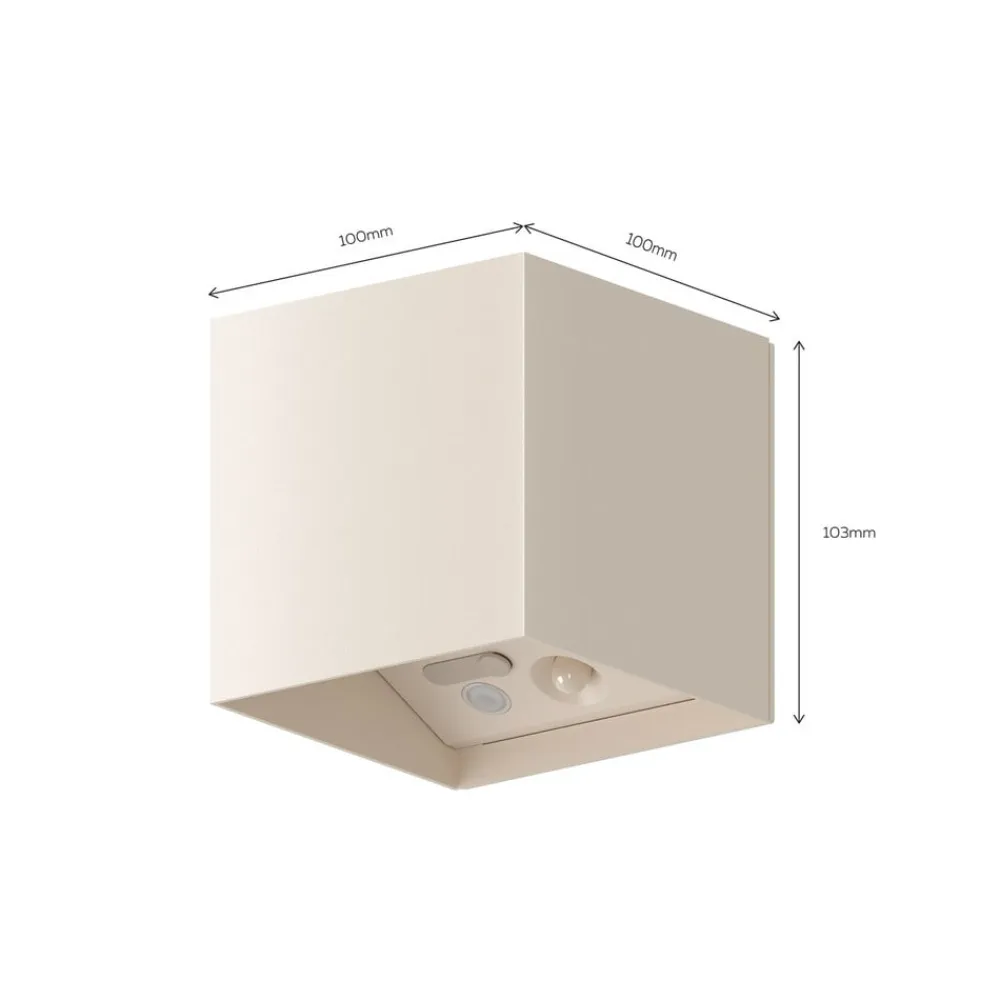 Den kubiske LED-væglampe Volterra er velegnet til indendørs og udendørs brug. Den er udstyret med en bevægelsessensor og spreder det varmhvide lys fra de indbyggede LED’er opad og nedad. Uanset om den monteres på facaden, i entréen, i gangene eller i stuerne, er effektfuld belysning garanteret med LED-væglampe Volterra. Væglampe er udstyret med et akkumulator og kræver derfor ingen strømforbindelse.