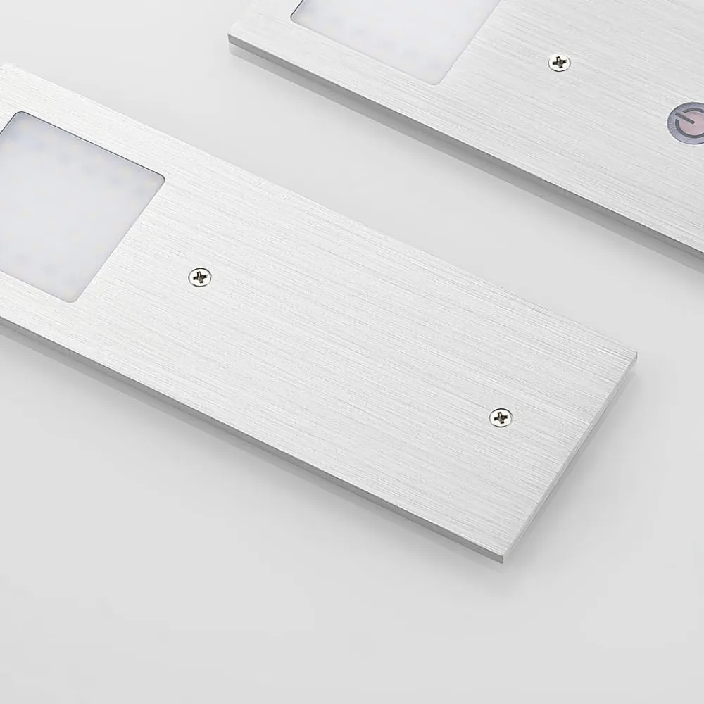 LED-aluminiumsunderbordslamper Nortra i praktisk sæt med tre, kantet form, dæmpbar via touchfunktion
