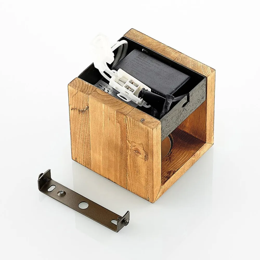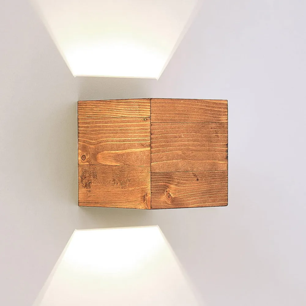 LED-væglampe Benicio, 11 cm, kantet, træ^Lindby Sale