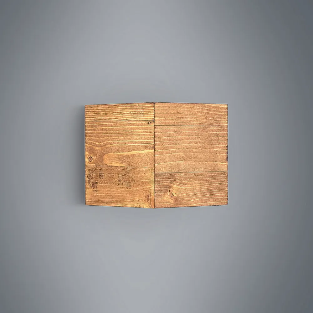 Benicio kubeformet væglampe i træ med lysudslip opad og nedad, dæmpbar via kontakten på væggen Denne væglampe består af en trækrop, der er åben foroven og forneden og imponerer med sin naturlige flair og smukke åretegning. Lysudsendelsen er særlig effektiv, hvor lyset slipper ud opad og nedad i en trapezform og er kendetegnet ved en smuk hygge, der kommer til sin ret i alle slags opholdsrum. Væglampen i træ med sin lineære grundform kan også integreres rigtig godt i den skandinaviske boligstil, hvor armaturet altid opfattes som en lyskilde med et stilfuldt udtryk. Takket være en dæmper-funktion kan væglampens lysstyrke varieres i tre trin med få enkle trin ved hjælp af den almindelige vægkontakt.