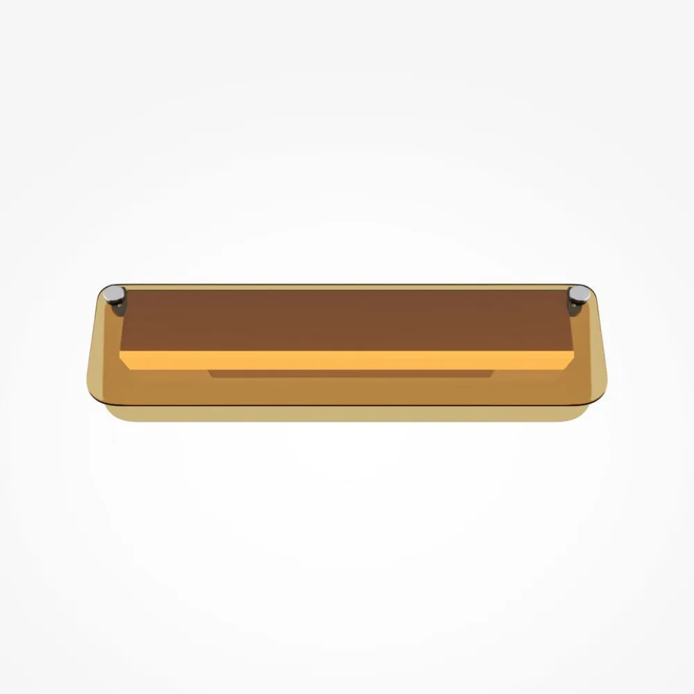 LED-væglampe FLAT kombinerer moderne design med højkvalitetsmaterialer som metal og ravfarvet glas. Den elegante kombination af messingfarvede elementer og den varmhvide lysfarve (3.000 K) skaber en harmonisk lyseffekt, der giver ethvert rum en stilfuld atmosfære.