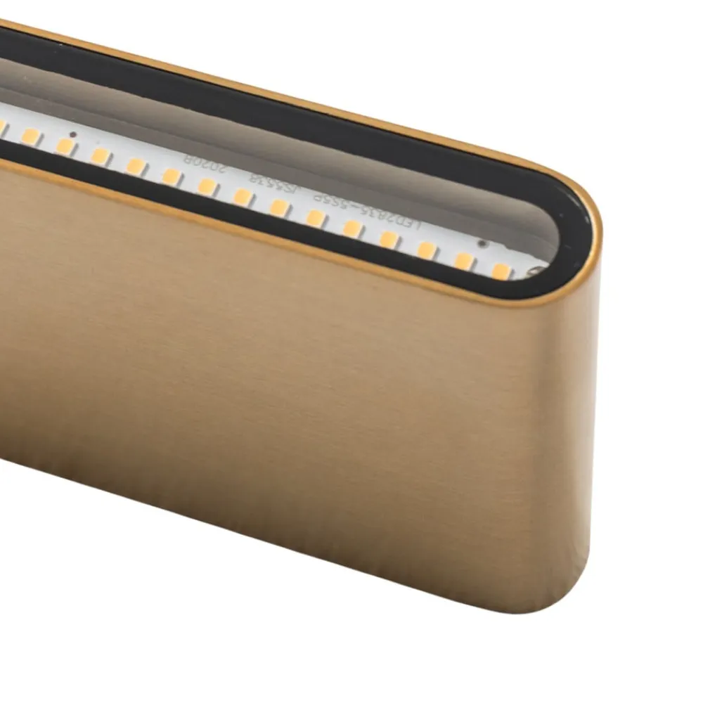 LED-væglampe Semi M kombinerer stilfuldt design med funktionel robusthed. Den er fremstillet af højkvalitets aluminium og glas og imponerer med sin gyldne farve, der giver ethvert rum et elegant præg. Lampen er specielt designet til udendørs brug og tilbyder med sin kapslingsgrad IP54 pålidelig beskyttelse mod stænk og støv.