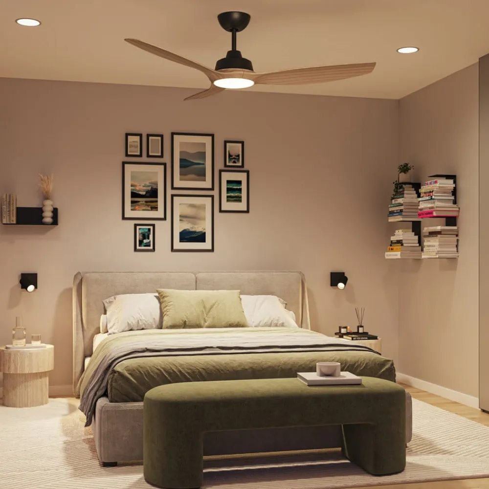 LED-ventilator Olas, Ø 132 cm, brun/sort, støjsvag^Philips
