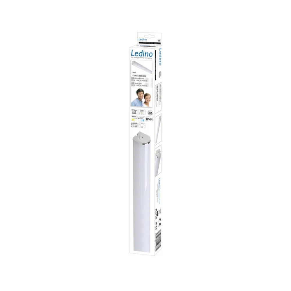 Lind LED-væglampe til badeværelser og fugtige rum Den lange og smalle Lind LED-væglampe udsender universelt hvidt lys, der kan tændes og slukkes med kontakten på huset. Polykarbonatskærmen sikrer en blændfri og ensartet lysfordeling. Takket være IP44-beskyttelsesgraden er lampen perfekt til brug i badeværelser eller andre fugtige områder