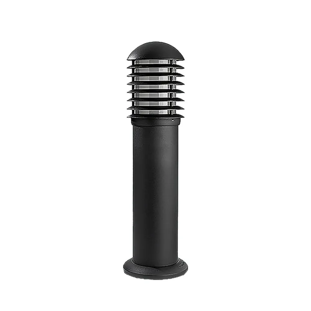 Balizas Grid sokkellampe, antracit Den cylindrisk formede Balizas Grid LED-sokkellampe er udstyret med en polykarbonatdiffusor i den øverste del, som er omgivet af en lamelskærm. Det sikrer blændfri belysning, da det leder lyset ned mod jorden. Sokkellampen er udstyret med en E27-fatning til montering af en lyskilde efter eget valg, hvilket sikrer fleksibilitet i valget af lyskilde og gør det muligt at vælge en lyskilde efter behov og personlige præferencer (maks. 15 W LED). Balizas Grid-sokkellampen kan bruges til at belyse stier, indkørsler, terrasseområder osv. og skabe en indbydende atmosfære samt sikkerhed og komfort.