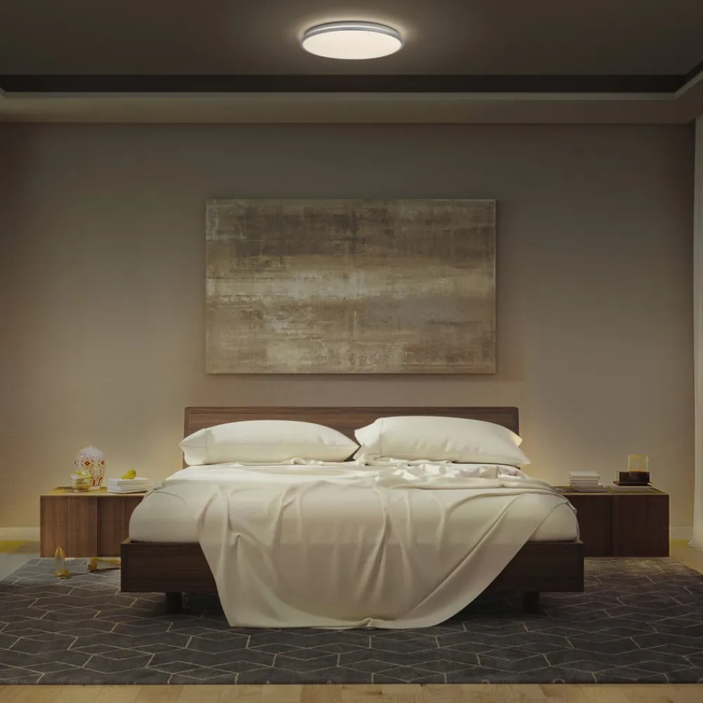 LED-loftsarmatur Orbis Dublin med sølvramme Udstyret med avanceret LED-teknologi er Orbis Dublin-loftsarmaturet et energieffektivt og meget holdbart armatur, der sikrer grundbelysning i mange områder og udsender et meget homogent lys takket være diffusoren, der sidder i sølvringen. Armaturet er designet til indendørs brug i køkkener, stuer, studierum, korridorer og mange andre områder. Ud over at udsende lys nedad i en bred vinkel, skaber lyset, der kommer ud hele vejen rundt gennem det smalle lysudtag, en smuk ring af lys i loftet.