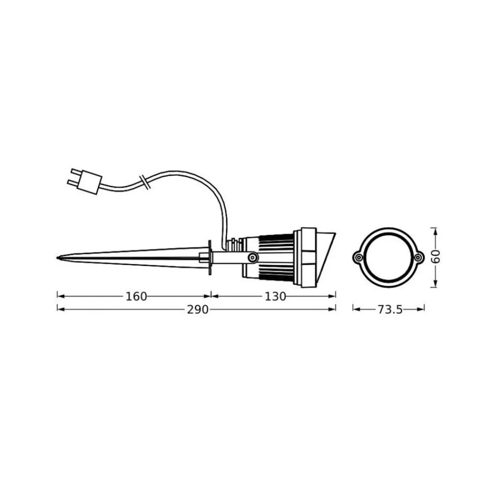 - Højde på jordspyd 16 cm, højde på spotlight 13 cm