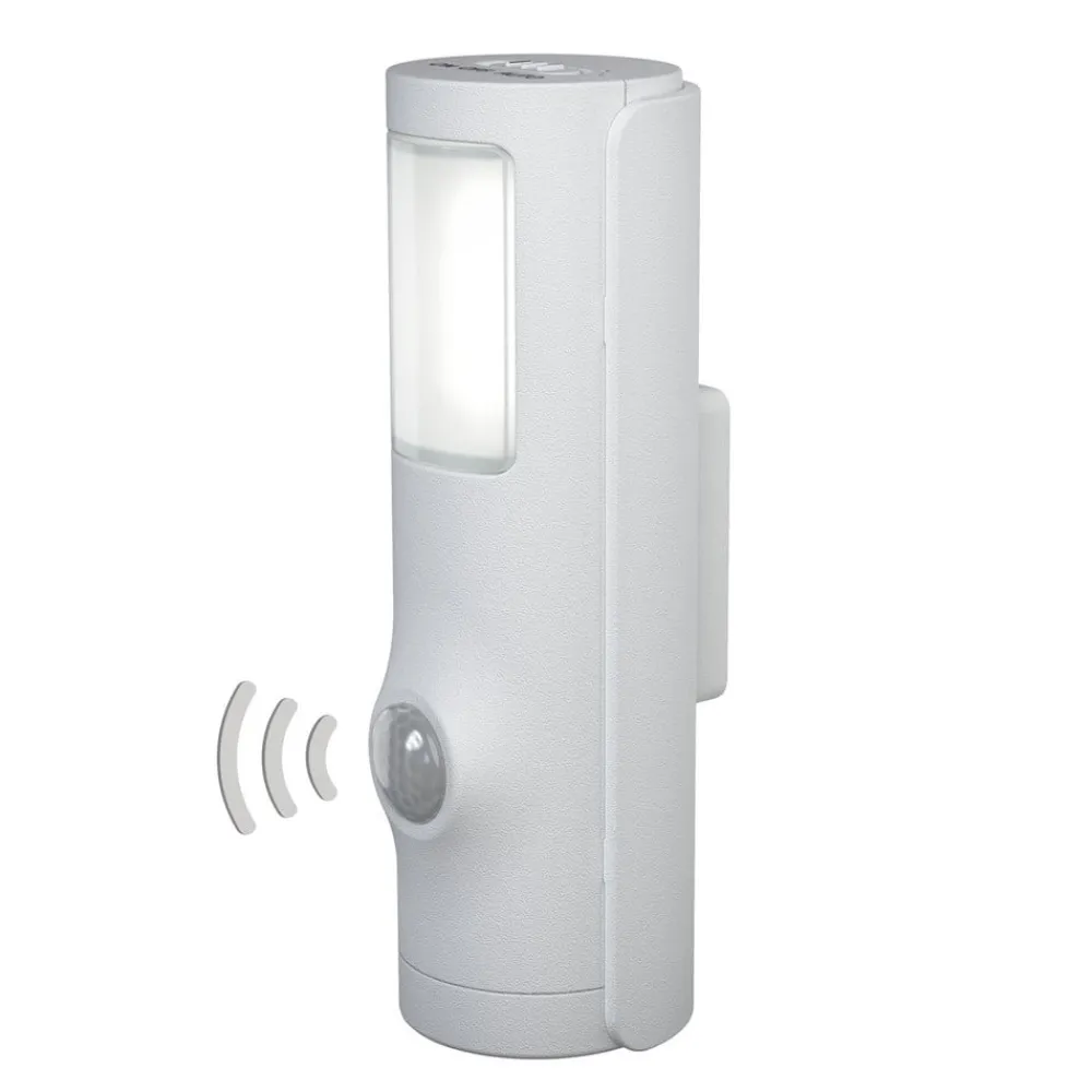 Nightlux Torch er også udstyret med en bevægelsessensor, så den kun lyser, når det faktisk er nødvendigt. Takket være batteridriften, er man ikke afhængig af elektricitet i huset. Kapslingsklassen IP54 tillader også udendørs brug.