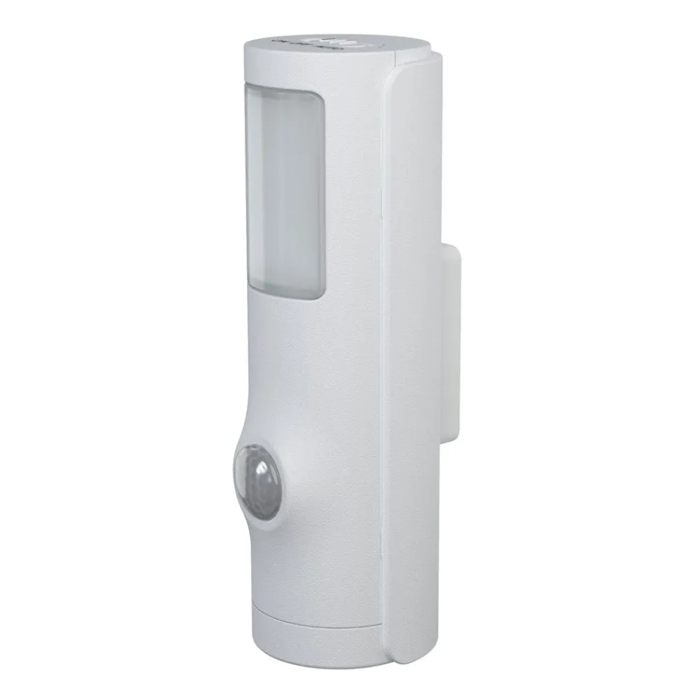 Et lille, bærbart LED natlys – det er hvad du får med Nightlux Torch. Det inkluderede vægbeslag kan monteres på mange slags underlag med det medfølgende monteringsmateriale. De cylinderformede lyskilder sidder i dette beslag. Den kan fleksibelt drejes i beslaget til venstre og højre for at justere lysstrålen til ens egne behov, og kan også fjernes så den fungerer som lommelygte.