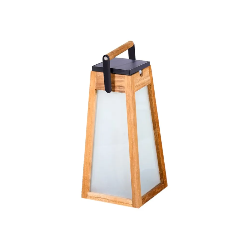 Moderne LED Solar Lantern Tecka lavet af træ med bevægelsessensor