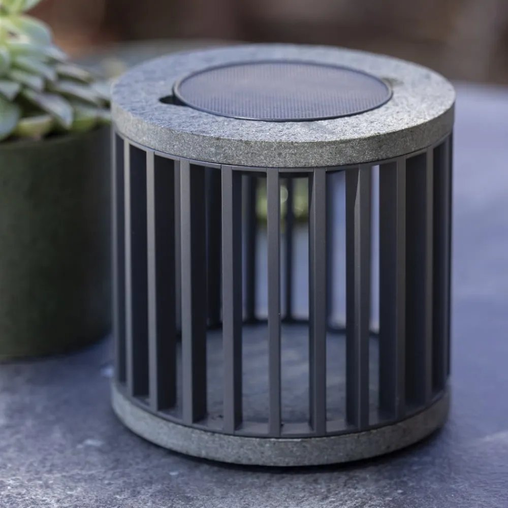 Les Jardins Solcellelamper>LED-solcellebordlampe Halo, grå, aluminium/granit