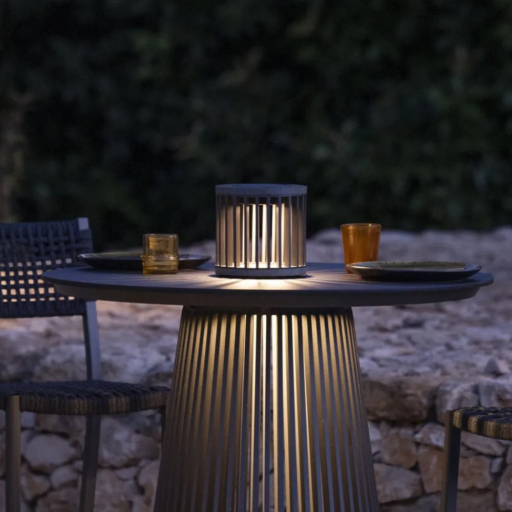 Elegant LED-solbordlampe Halo af aluminium og granit Denne moderne LED-solbordlampe Halo kombinerer materialer af høj kvalitet som aluminium og granit, der lover lang levetid og gør den til et ideelt belysningsobjekt til udendørs brug. To forskellige tilstande kan indstilles: i den første tilstand justeres lysstyrken automatisk, og i den anden tilstand kan lysstyrken indstilles individuelt fra 3 til 200 lumen – Lysets varighed: mellem 8 og 200 timer – Genopladelig via solmodul eller USB-kabel