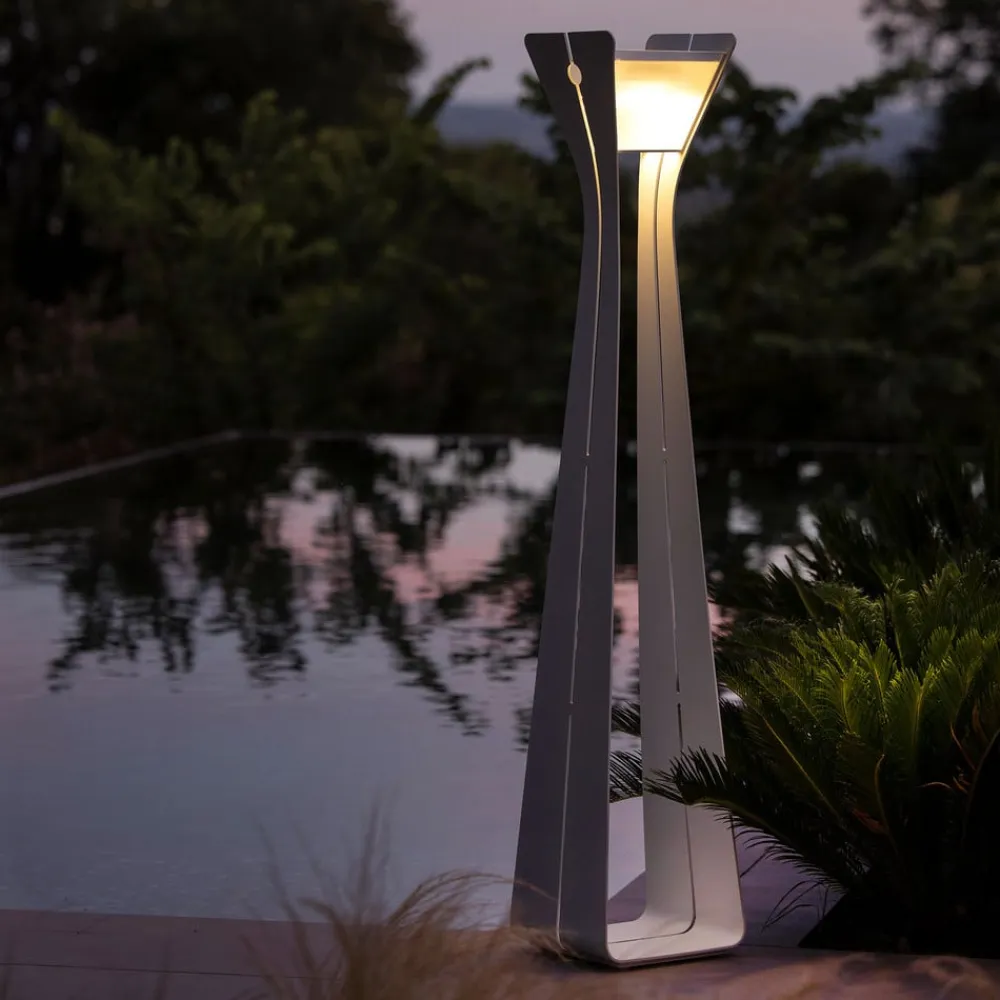 Les Jardins Solcellelamper>Osmoz LED-solcellelampe af aluminium, 175 cm, hvid