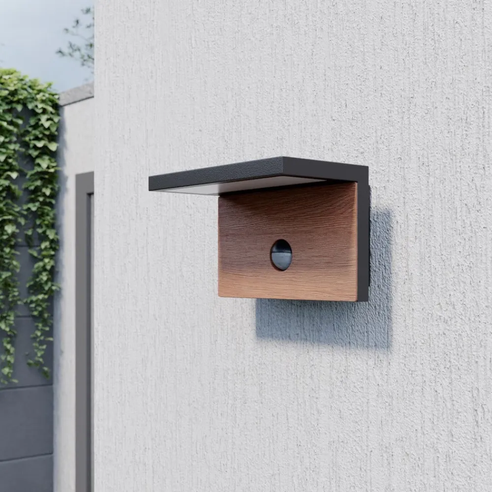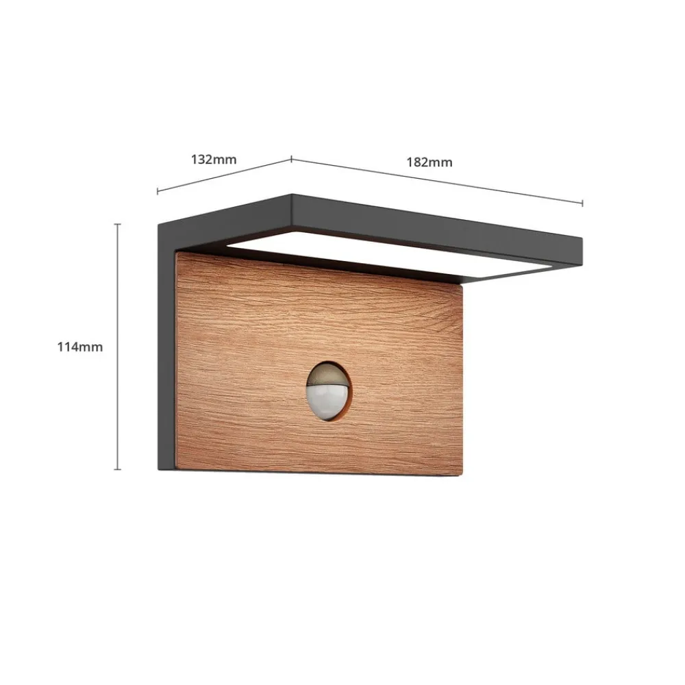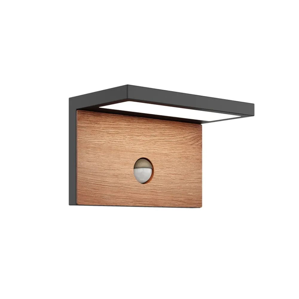 Den udendørs LED-væglampe Lignus er især kendetegnet ved dens praktiske funktionalitet. Udstyret med en skumringssensor og en bevægelsessensor tilbyder den energibesparende og samtidig dekorativ belysning udendørs.