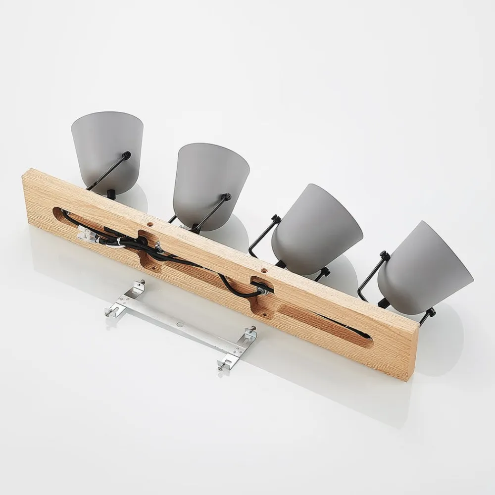 Med sit lange ydre giver Adalin rigelig belysning til det indre. Dens loftsarmatur er lavet af lyst egetræ og bærer fire lampeskærme, som er lavet af gråt stål og kan udstyres med E14-pærer. Armaturet er perfekt egnet til montering i en stue, men det gør også en super figur i gangen. Træelementet giver Adalin en diskret landhus-flair og skaber en hyggelig atmosfære i indretningen. Loftslampen er således ikke kun en dagligdags lyskilde, men overbeviser også som et stilfuldt dekorativt objekt.