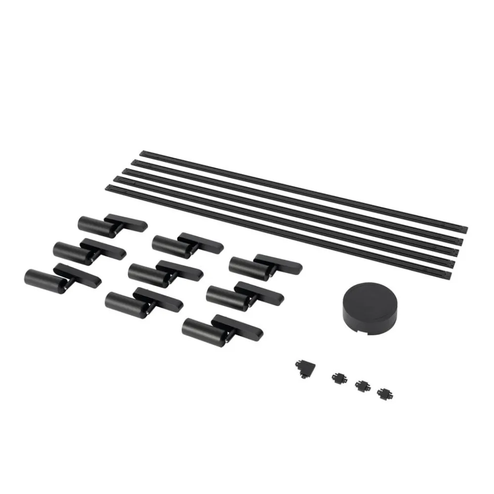 Skinnesystemet Lumaro er sort og består af jern, aluminium og plast. Det har et fladt og elegant design og passer perfekt ind i moderne boliger. Derudover er det hurtigt og nemt at installere, og med sit lavspændingssystem er det energieffektivt, bæredygtigt og har en lang levetid.