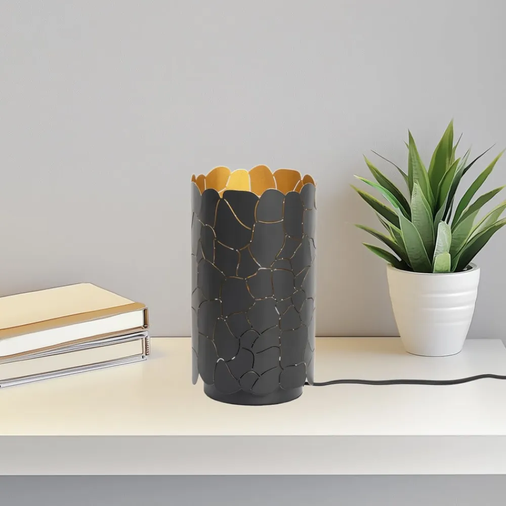 Aralena bordlampe: elegance i sort og guld til stuen og gangen Oplev den stilfulde Aralena bordlampe, som forbedrer ethvert opholdsrum med sit tiltalende mønster i sort og guld. Lampens moderne stil passer perfekt ind i stuens og gangens æstetik og skaber en atmosfære, der indbyder til afslapning og øger produktiviteten. Aralena tændes og slukkes nemt ved hjælp af en kabelkontakt.