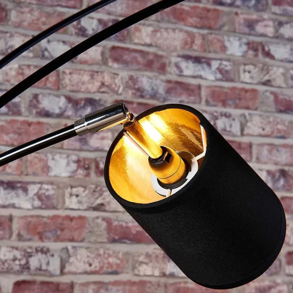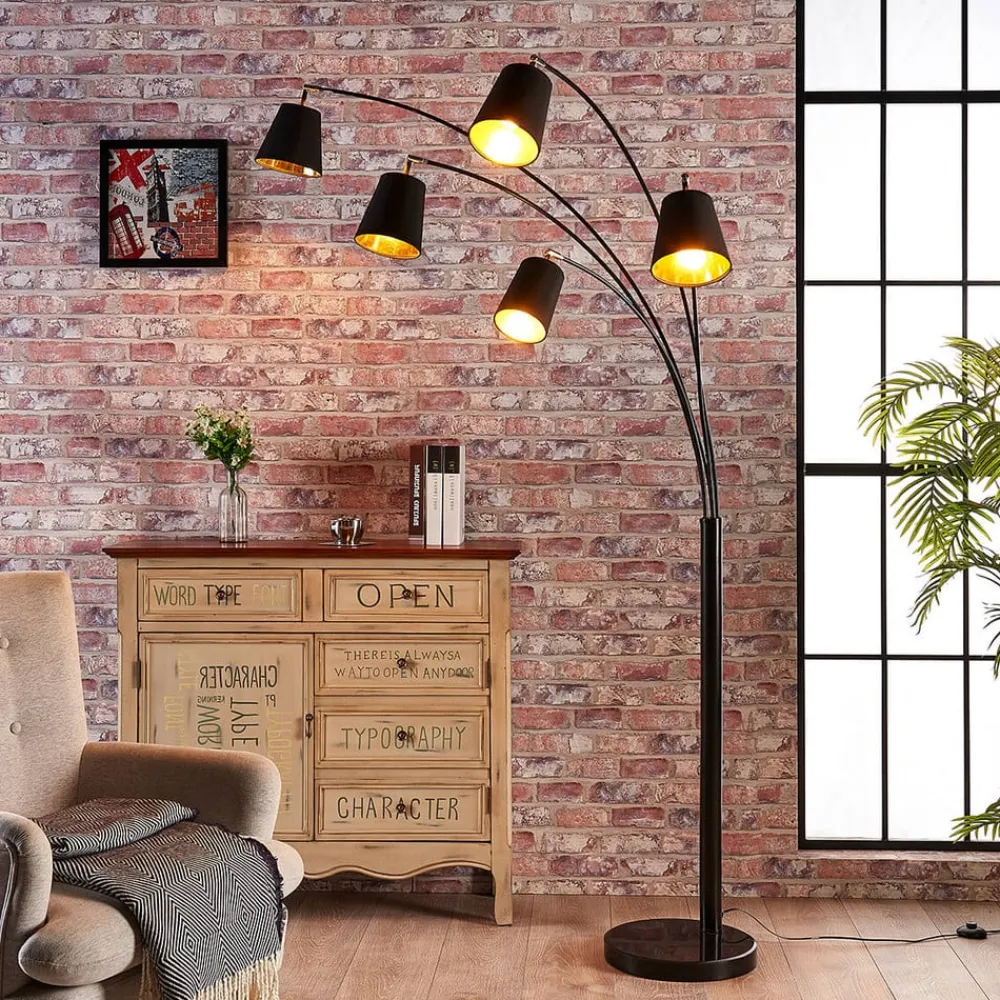 Sort-gylden tekstil-gulvlampe Tinne med 5 moderne lampeskærme